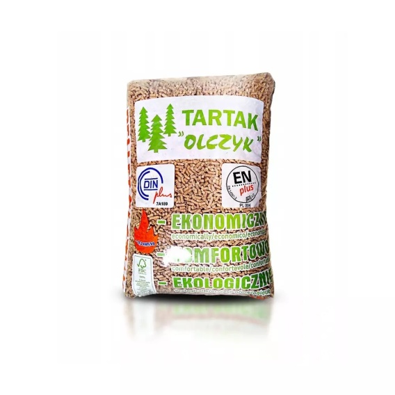 Premium pellet drzewny certyfikowany firmy Tartak Olczyk jeden worek 15kg.